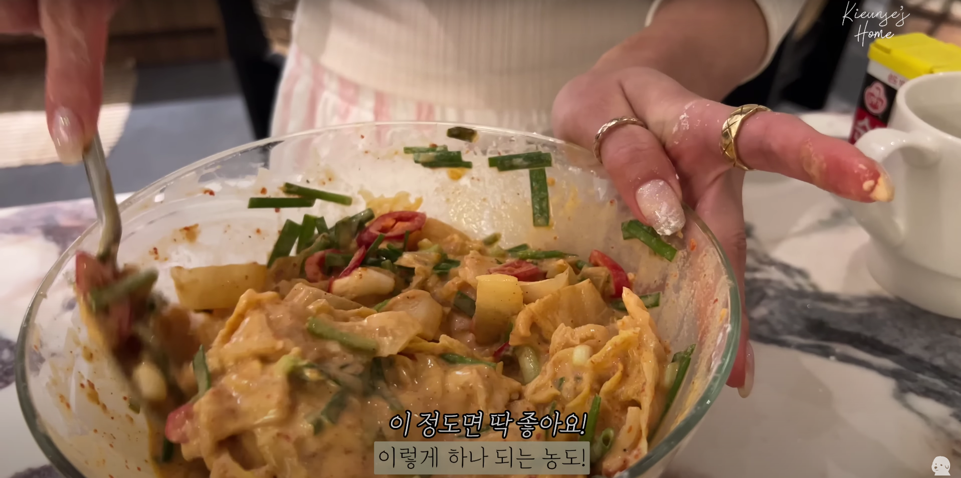 (김치전에는 김치가 듬뿍 들어가야 한다구요.)