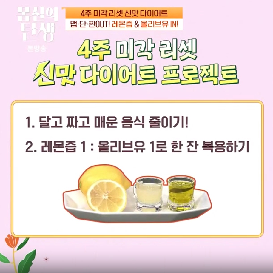 아침 공복에 레몬즙 1 : 올리브유 1 한잔을