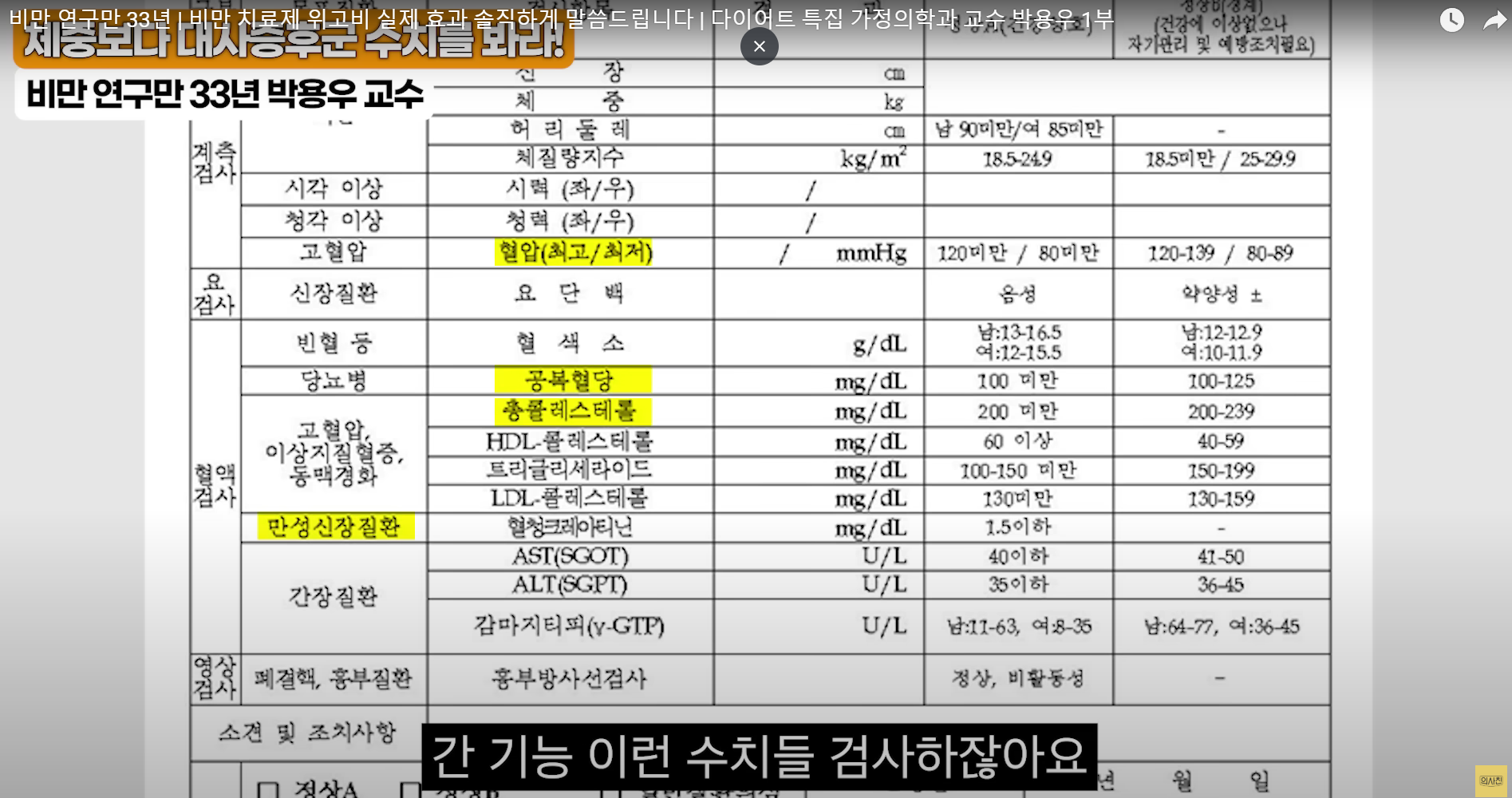 건강검진에서 나온 이상 수치들을
